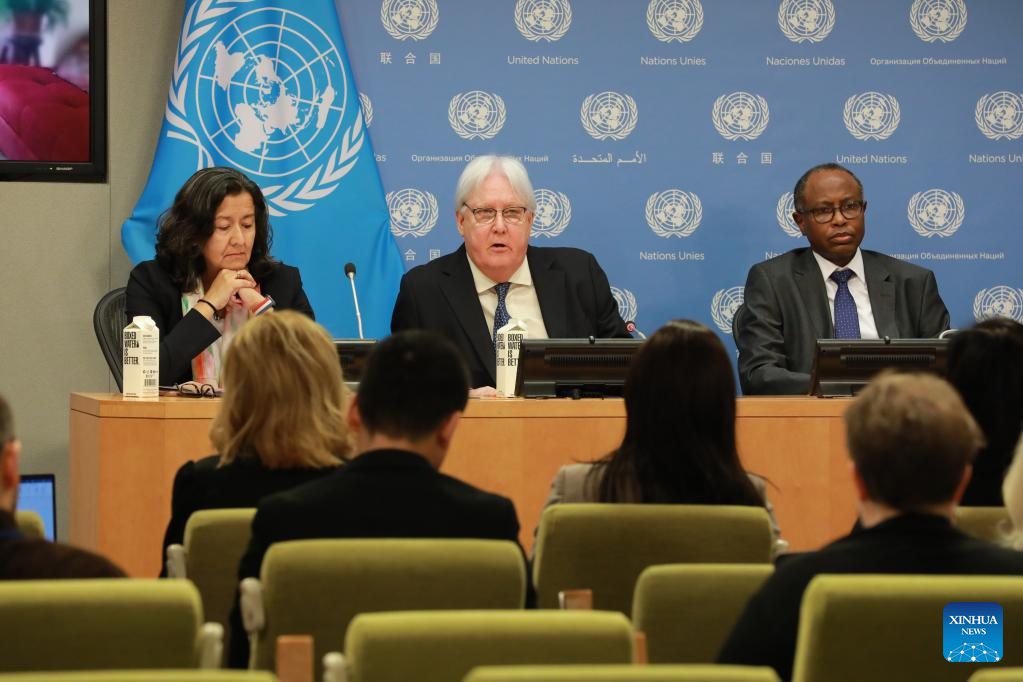 UN Undersecretary-General for Humanitarian Affairs Martin Griffiths speaks at a press briefing on the situation in Afghanistan at the UN headquarters in New York, on Jan. 30, 2023. A mission of the Inter-Agency Standing Committee to Afghanistan has reported positive signs concerning women's rights in the country. (Xinhua/Xie E)