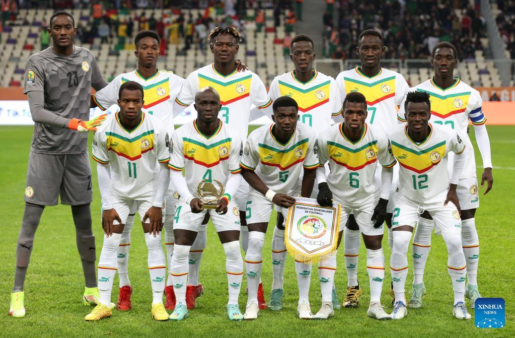 Players of Senegal pose for a group photo before the semifinal match of the 7th African Nations Championship between Senegal and Madagascar at Nelson Mandela Stadium in Algiers, Algeria, Jan 31, 2023. (Xinhua)