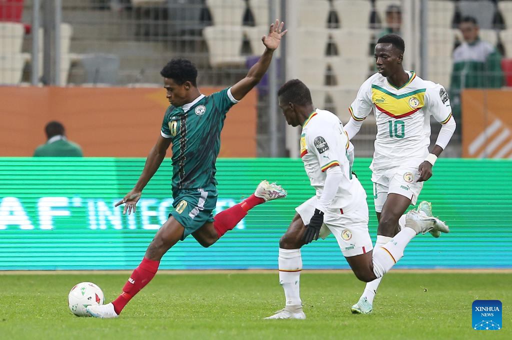 Senegal's Lamine Camara (1st R) breaks through during the semifinal match of the 7th African Nations Championship between Senegal and Madagascar at Nelson Mandela Stadium in Algiers, Algeria, Jan 31, 2023. (Xinhua)