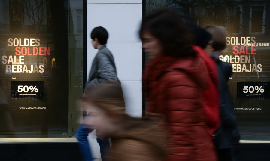 Pedestrians walk on a business street in Brussels, Belgium, Jan. 3, 2023. (Xinhua/Zheng Huansong)