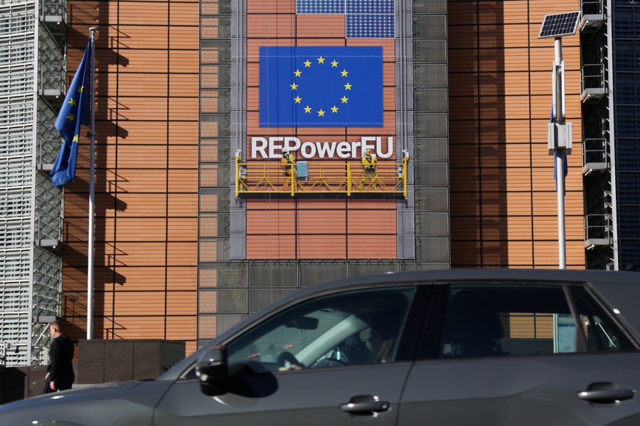 A vehicle passes the building of the European Commission in Brussels, Belgium, Oct. 18, 2022. (Xinhua/Zheng Huansong)