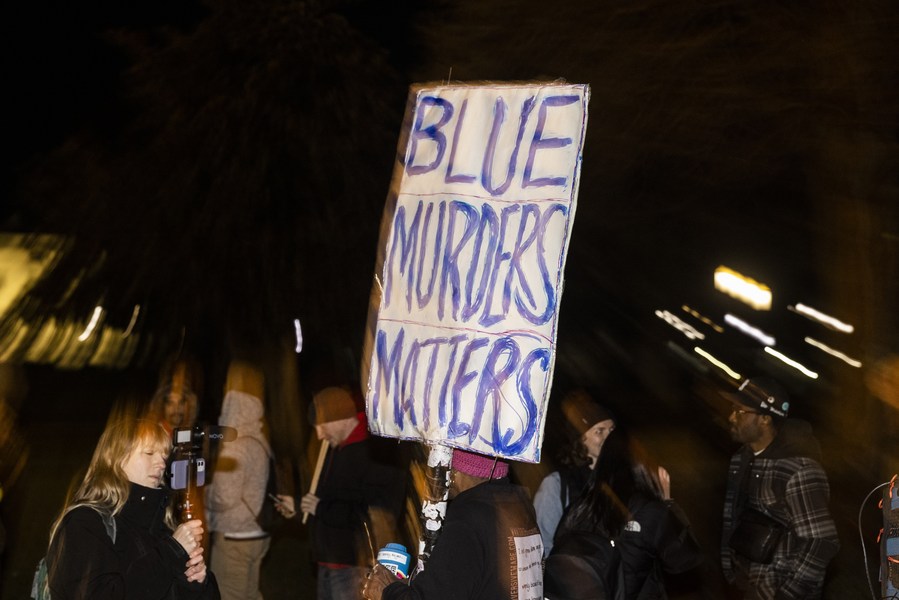 People attend a protest against police brutality in Washington, D.C., the United States, Jan. 27, 2023. (Photo by Aaron Schwartz/Xinhua)