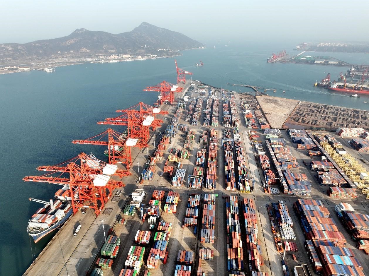 Photo shows a busy scene at a container terminal in Lianyungang, east China's Jiangsu province, Jan. 18,2023. (People's Daily Online/Wang Chun)