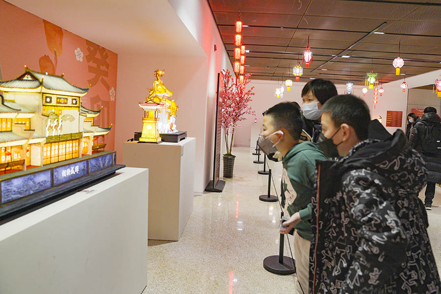 People visit the lantern exhibition at China National Arts and Crafts Museum in Beijing on Feb. 1, 2023. (People’s Daily Online/Peng Yukai)