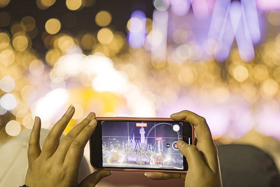 A visitor takes pictures at a temple fair held at Shijingshan Amusement Park in Beijing on Jan. 31, 2023. (People’s Daily Online/Peng Yukai)