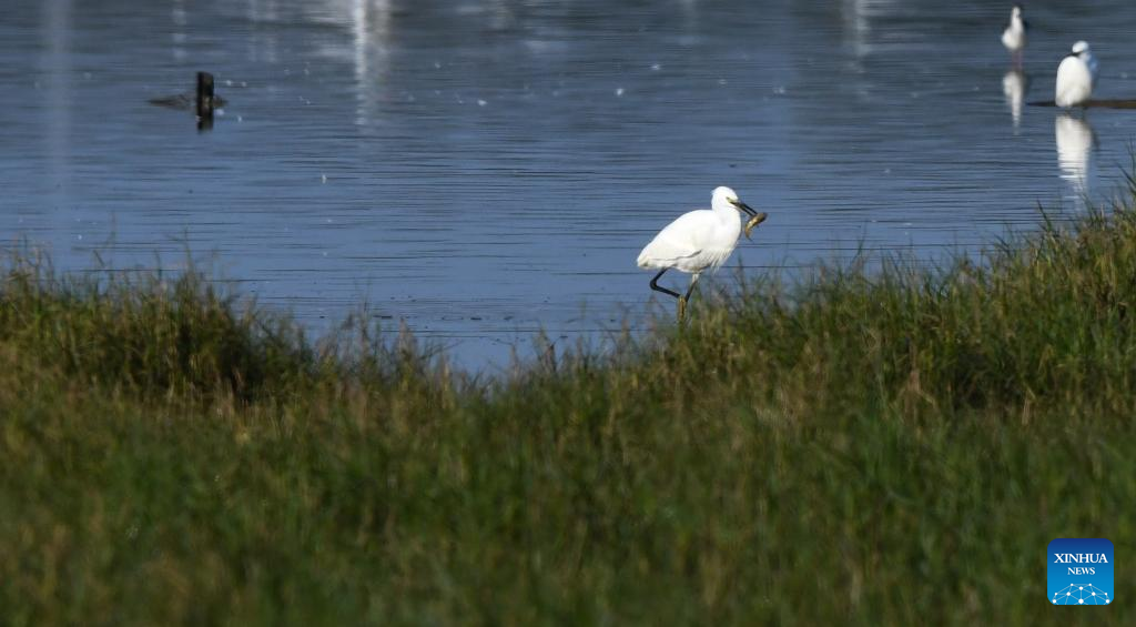 Egrets forage in Dongzhaigang National Nature Reserve in south China's Hainan Province, Jan. 30, 2023. February 2 marks World Wetlands Day. A total of 32,036 water birds of 71 species were observed during a latest annual survey of water birds wintering in Hainan. Among them, 201 black-faced spoonbills were recorded, the highest number since the survey of wintering water birds began in 2003. (Xinhua/Yang Guanyu)