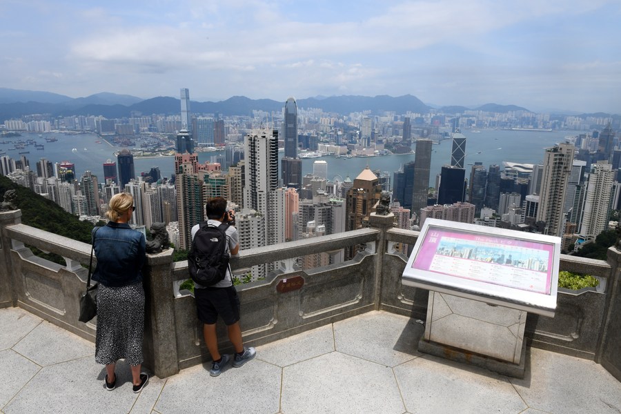 Tourists visit the Peak Hong Kong scenic spot in south China's Hong Kong on Aug. 20, 2019. (Xinhua/Lu Hanxin)