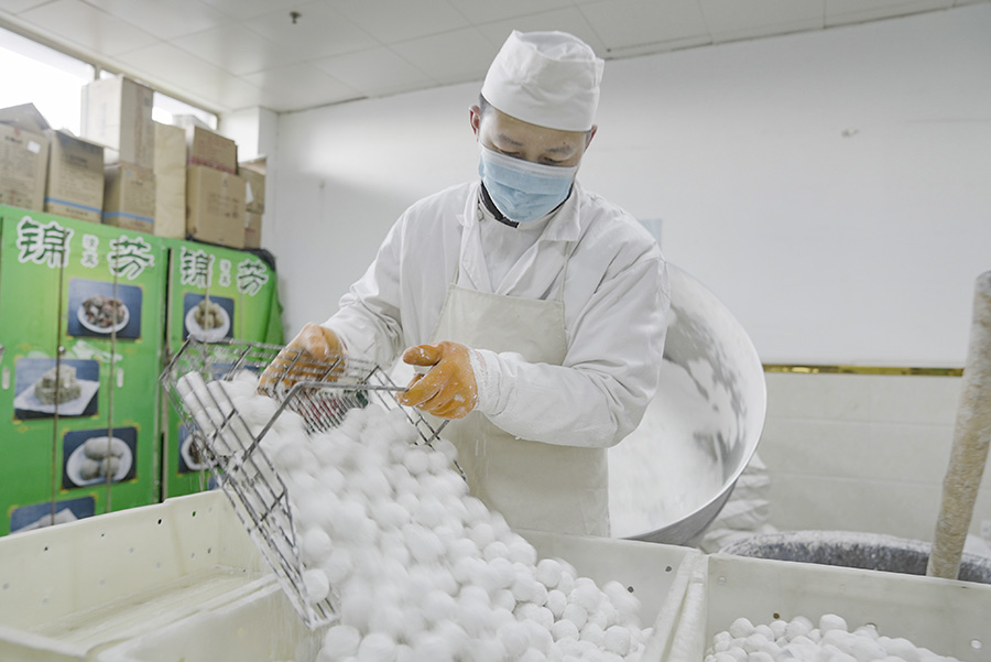 A worker prepares yuanxiao (glutinous rice balls stuffed with fillings of various flavors), a delicacy eaten during China’s Lantern Festival, at a time-honored snack shop renowned for making traditional food in Dongcheng District, Beijing, Feb. 1, 2023. (People’s Daily Online/Peng Yukai)