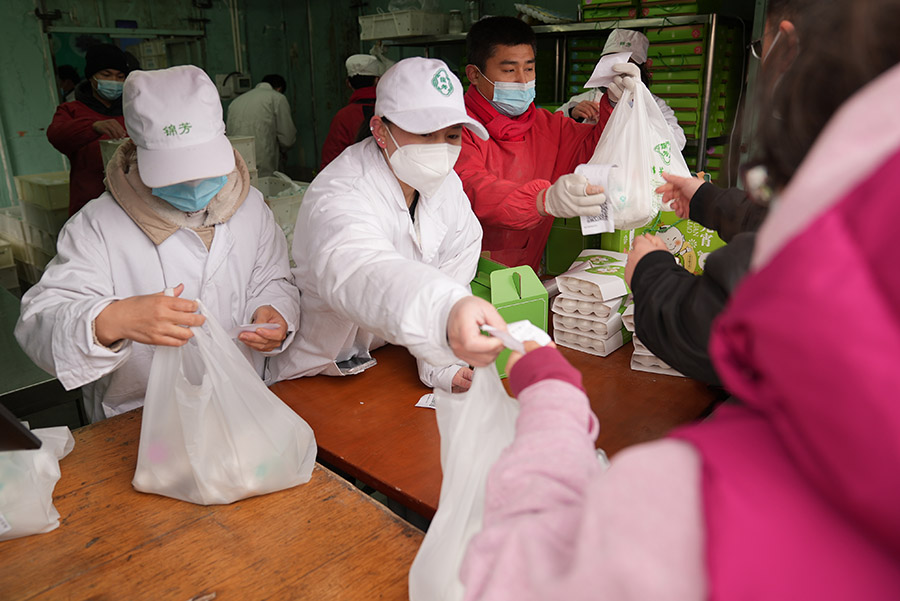 Workers sell yuanxiao (glutinous rice balls stuffed with fillings of various flavors), a delicacy eaten during China’s Lantern Festival, at a time-honored snack shop renowned for making traditional food in Dongcheng District, Beijing, Feb. 1, 2023. (People’s Daily Online/Peng Yukai)