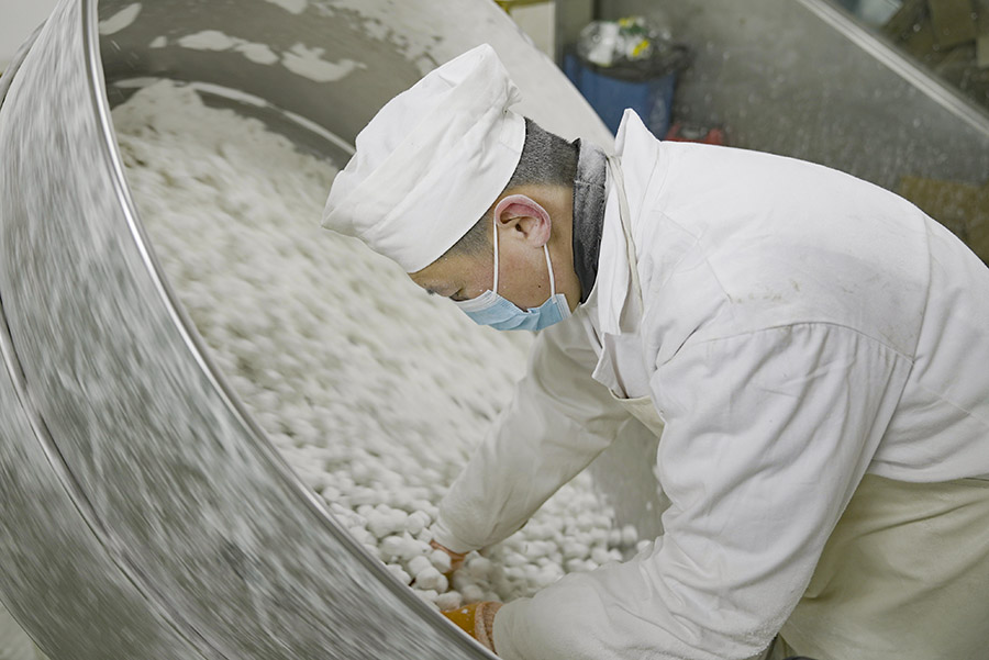 A worker prepares yuanxiao (glutinous rice balls stuffed with fillings of various flavors), a delicacy eaten during China’s Lantern Festival, at a time-honored snack shop renowned for making traditional food in Dongcheng District, Beijing, Feb. 1, 2023. (People’s Daily Online/Peng Yukai)