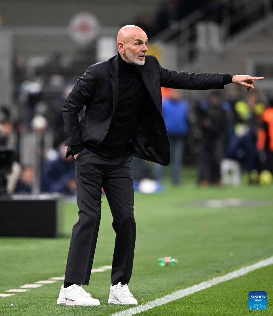 AC Milan's coach Stefano Pioli gestures during a Serie A football match between Inter Milan and AC Milan in Milan, Italy, on Feb. 5, 2023. (Photo by Xinhua/Daniele Mascolo)