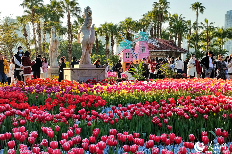 Photo shows blooming tulips at Xiamen Horticulture Expo Garden in Jimei district, Xiamen, southeast China’s Fujian Province. (People’s Daily Online/Chen Bo)