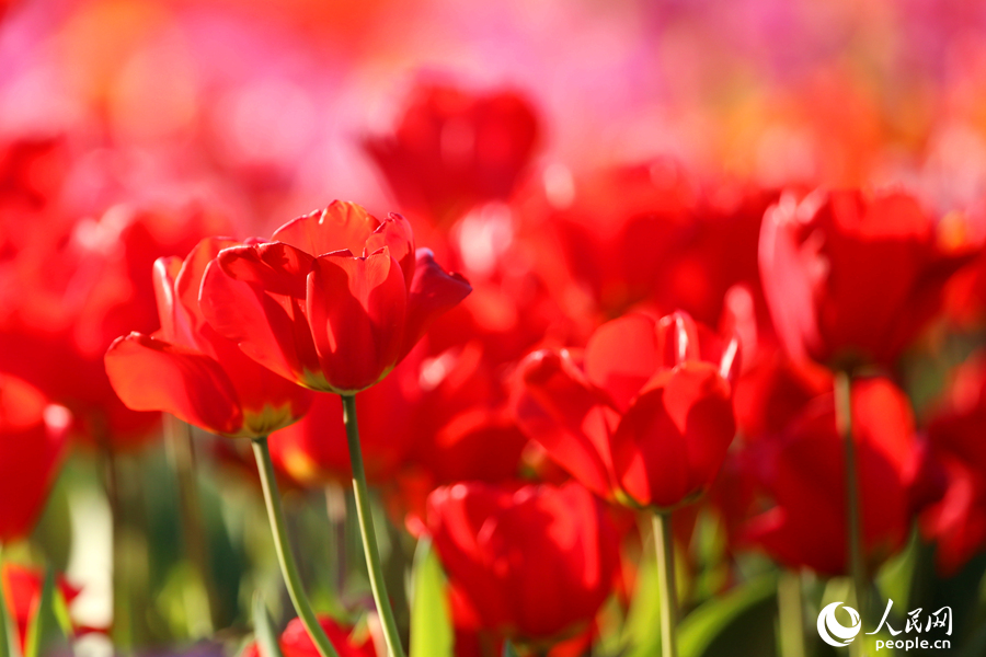 Photo shows blooming tulips at Xiamen Horticulture Expo Garden in Jimei district, Xiamen, southeast China’s Fujian Province. (People’s Daily Online/Chen Bo)