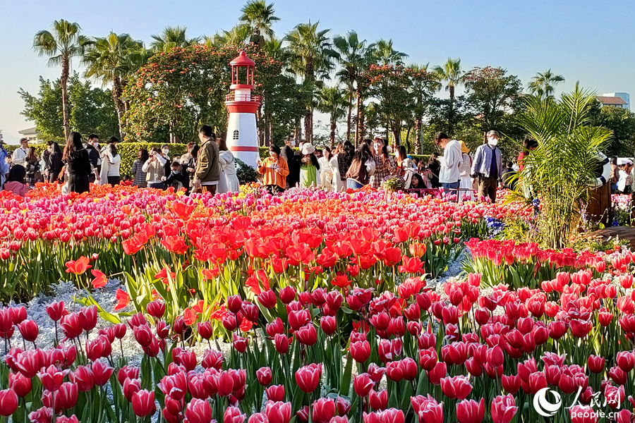 Photo shows blooming tulips at Xiamen Horticulture Expo Garden in Jimei district, Xiamen, southeast China’s Fujian Province. (People’s Daily Online/Chen Bo)