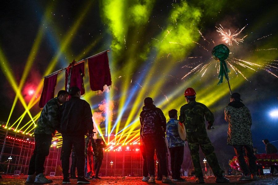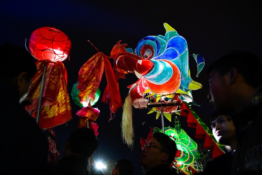 On the eve of the Lantern Festival this year, local people of Taijiang County, southwest China's Guizhou Province attends a "Wulong Xuhua" competition in celebration of the Lantern Festival, which falls on Feb. 5 this year.