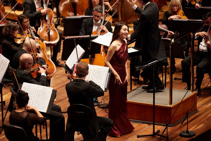Chinese soprano Zhang Meigui (center) performs during the 10th annual Chinese New Year Concert at the Hamer Hall in Melbourne, Australia on Feb. 4, 2023. (Photo by Laura Manariti/Provided by Melbourne Symphony Orchestra)