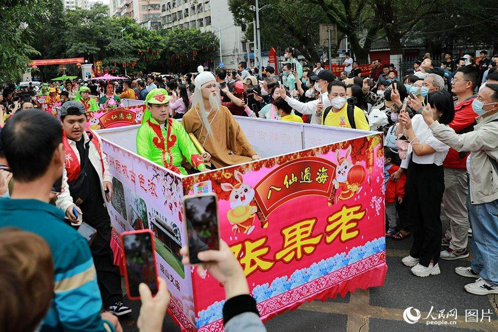 Visitors take pictures of a parade in Haikou city, south China’s Hainan Province, on Feb. 5, 2023. (People’s Daily Online/Meng Fansheng)