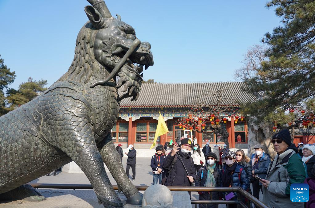 Elderly tourists from Hong Kong visit the Summer Palace in Beijing, capital of China, Feb. 7, 2023. (Xinhua/Chen Zhonghao)