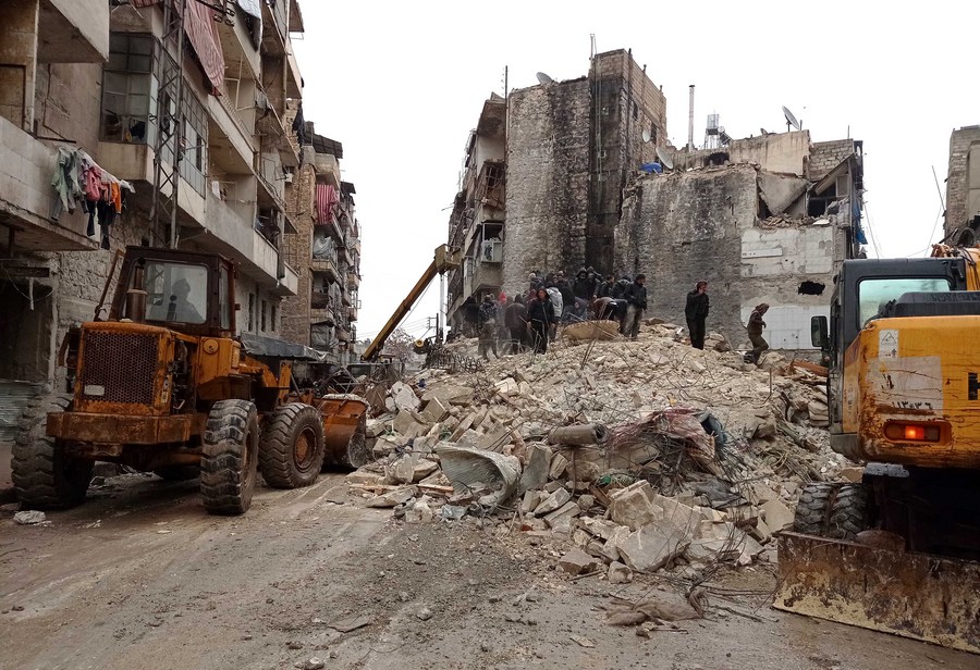 Rescue work is in progress in quake-hit Aleppo province, northern Syria, Feb. 6, 2023. (Str/Xinhua)