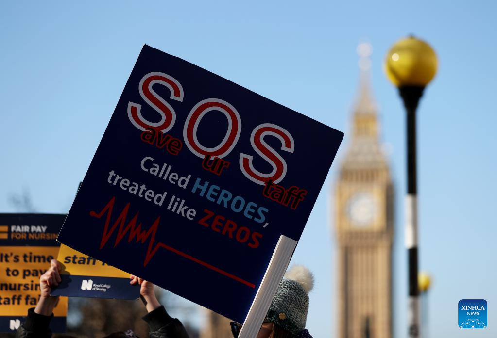 LONDON, Feb. 6 (Xinhua) -- Nurses and ambulance workers in Britain on Monday started another round of strikes in the thick of lengthy and intensifying disputes over payment.