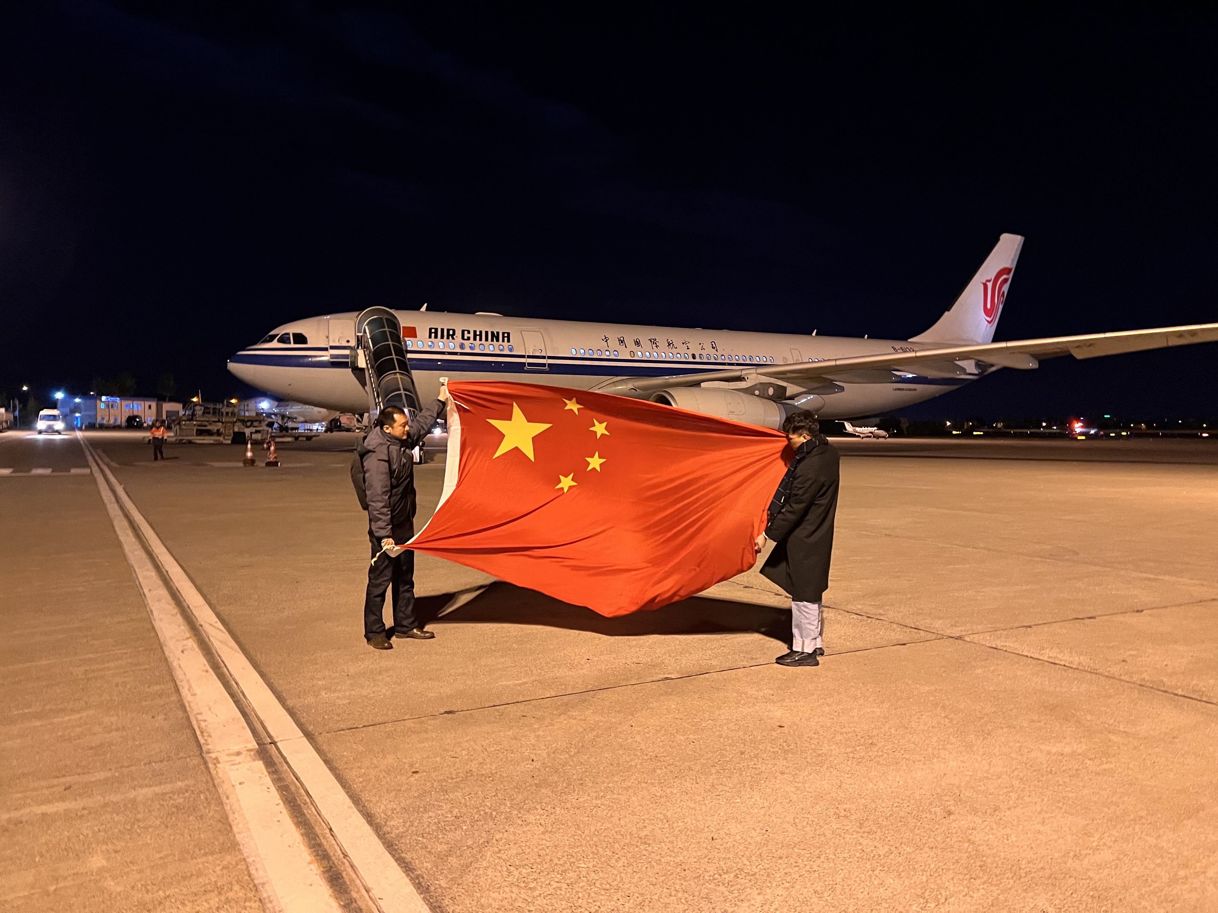 Chinese rescue team arrives at Adana Airport in Türkiye at 4:30 am local time, Feb. 8. (Photo courtesy of China’s Ministry of Emergency Management)