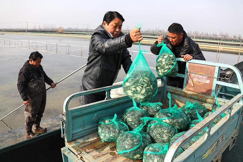The period around Lichun, or the beginning of spring, the first solar term of the traditional Chinese lunar calendar, is the best time for local breeders to release shrimp and crab seedlings into their breeding ponds. (People's Daily Online/Tao Tao)