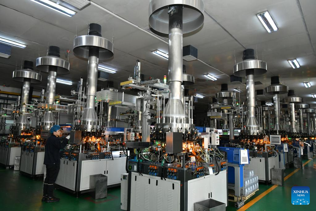 Workers are seen in the production line at a kitchenware company in Shahe, north China's Hebei Province, on Feb. 6, 2023. Hebei Province has focused on improving the innovation ability of small and medium enterprises and adopted a series of measures to support them. (Xinhua/Mu Yu)