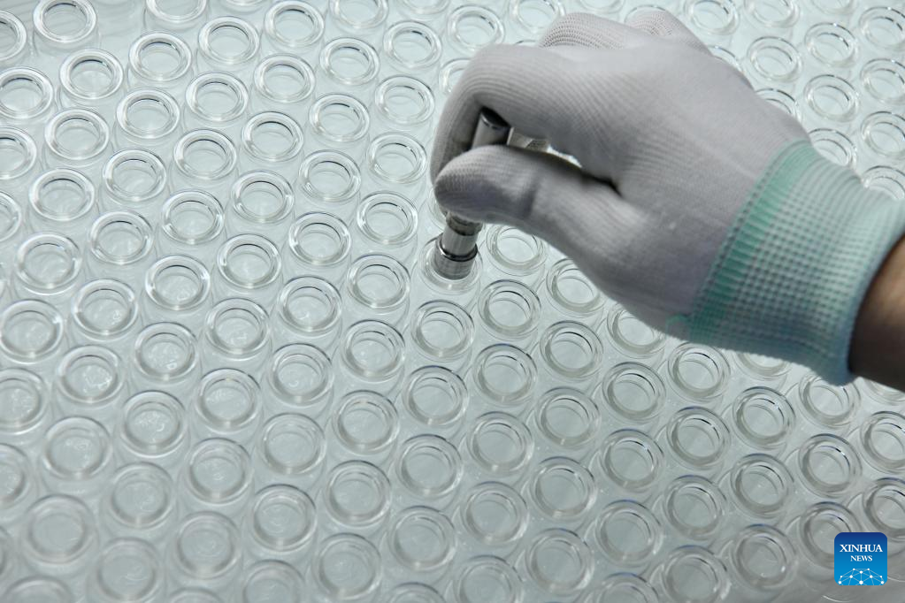 A worker checks glass products in the workshop of a glass company in Cangxian County, north China's Hebei Province, on Feb. 8, 2023. Hebei Province has focused on improving the innovation ability of small and medium enterprises and adopted a series of measures to support them. (Xinhua/Mu Yu)