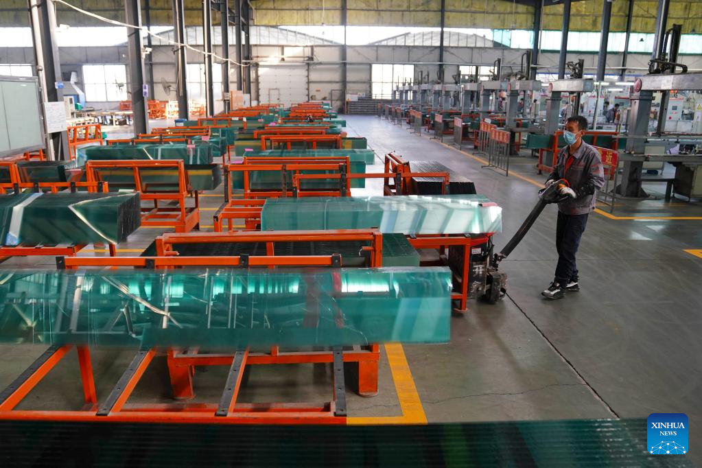 A man works in the workshop of a glass company in Cangxian County, north China's Hebei Province, on Feb. 8, 2023. Hebei Province has focused on improving the innovation ability of small and medium enterprises and adopted a series of measures to support them. (Xinhua/Mu Yu)