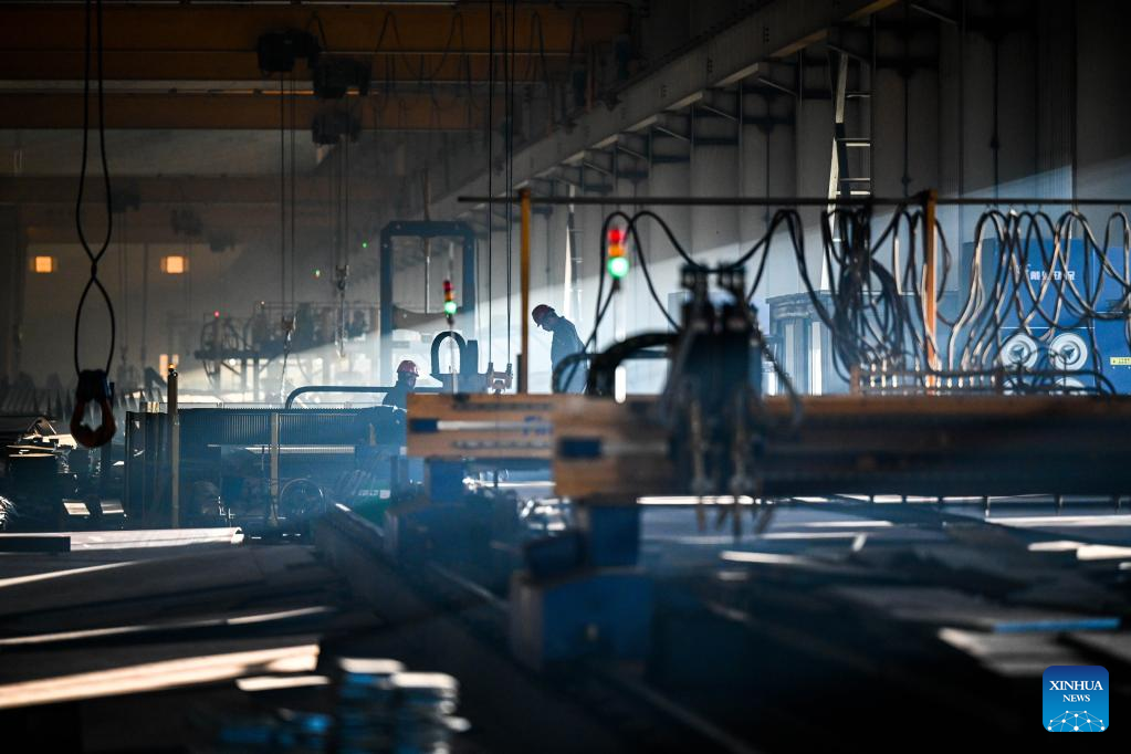 Staff members work at a new energy equipment industrial park in Tongliao, north China's Inner Mongolia Autonomous Region, Feb. 2, 2023. (Xinhua/He Shuchen)