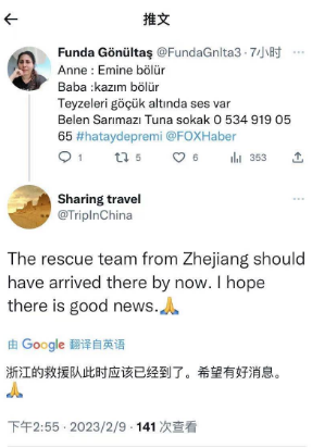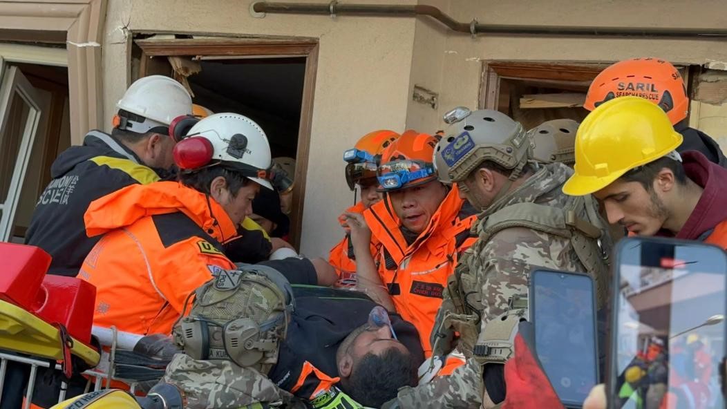 The most heartening moment came at 1:30 p.m. local time – we and a Turkish rescue team successfully rescued a family of two adults and three children in the town. The adults were seriously hurt and were immediately transported to the hospital, and to our relief, the children were unhurt.
