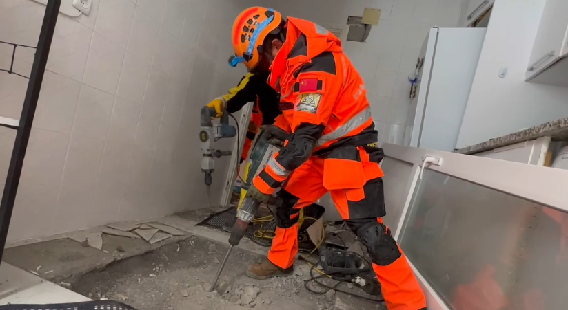 He Jun and his teammates carry out rescue missions in Türkiye. (Photo provided by the Rescue Team of Ramunion)