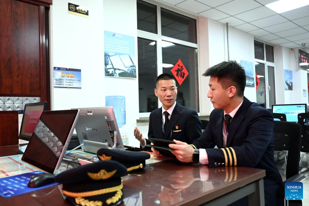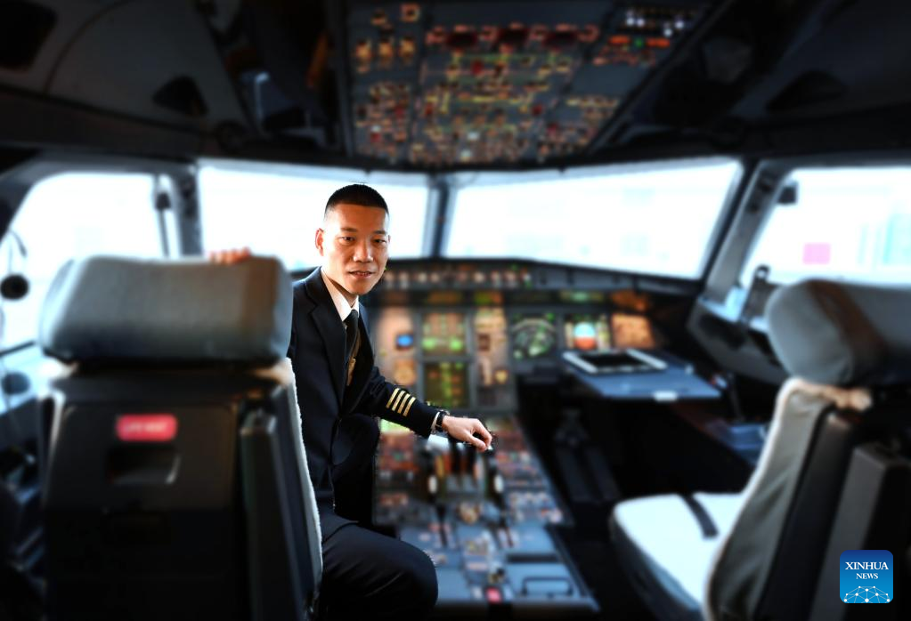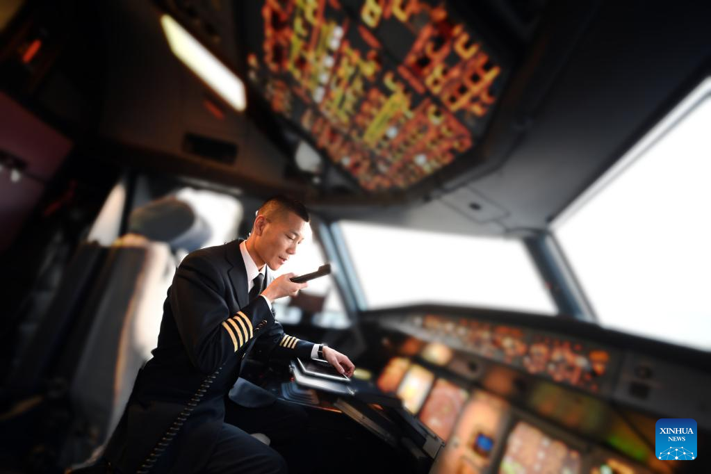 Ma Baoli is seen in the cockpit in Dalian, northeast China's Liaoning Province, Feb. 4, 2023. (Xinhua/Jin Liangkuai)
