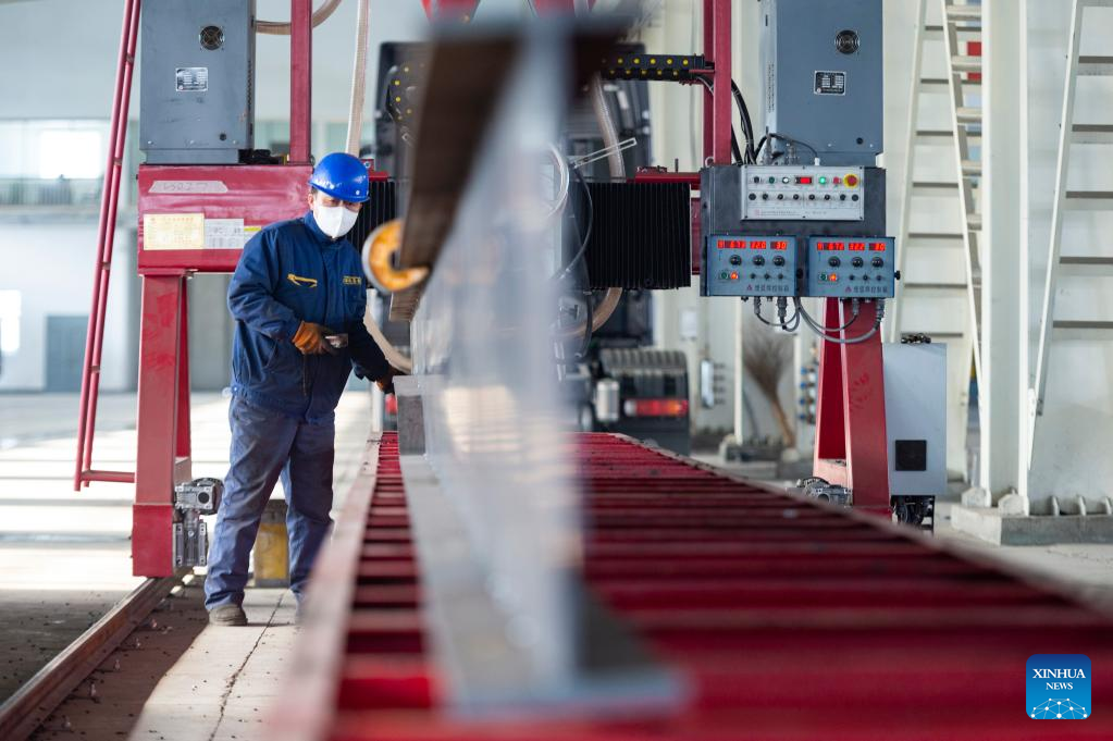 An employee works at the Heihe Liyuanda Special Automobile Manufacturing Co., Ltd. in the Heihe Area of China (Heilongjiang) Pilot Free Trade Zone in northeast China's Heilongjiang Province, Feb. 11, 2023. Recently, enterprises in the Heihe Area of China (Heilongjiang) Pilot Free Trade Zone have been busy with production to meet the orders and to make a good start in the first quarter of 2023. (Xinhua/Xie Jianfei)