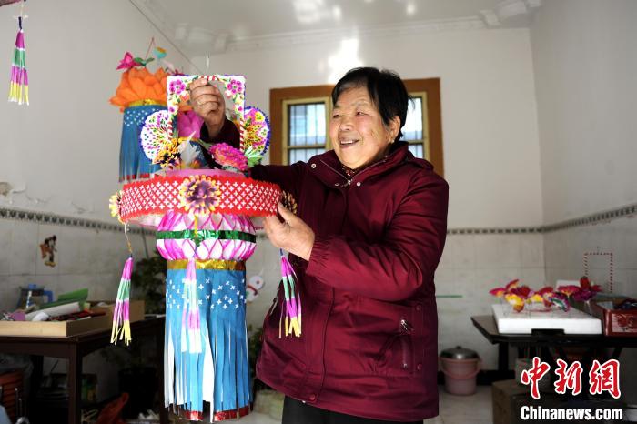 Wang Pufang shows a colorful lantern. (Chinanews.com/Gao Cheng)