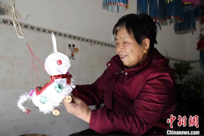 Wang Pufang makes a rabbit-shaped colorful lantern. (Chinanews.com/Gao Cheng)