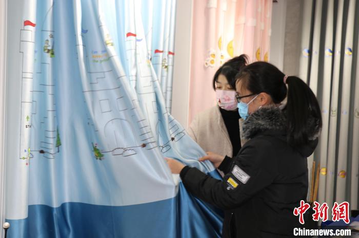 A merchant arranges curtain samples in China Textile City in Shaoxing, east China’s Zhejiang Province. (Chinanews.com/Xiang Jing)