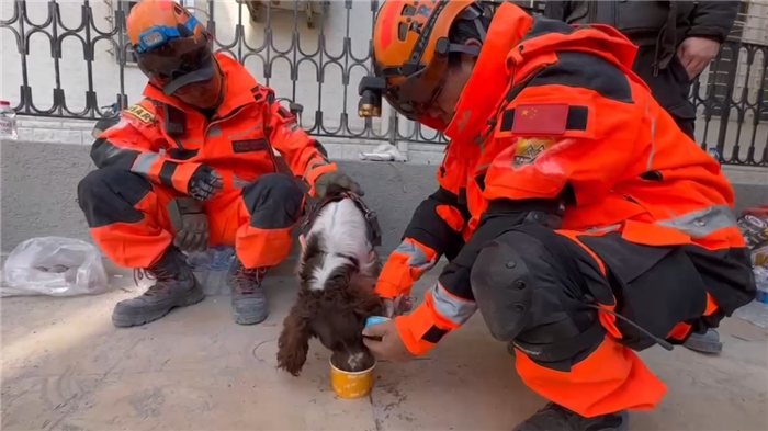 Search and rescue dog Lucky has been working tirelessly for over three days. To ensure it performs to the best of its ability, we have been providing Lucky with the necessary water and food during breaks, while Lucky’s handler, Gao Zhijiang, is always by its side to offer support and comfort. Lucky is not just an important partner for the team, but also a valued “comrade-in-arms"!