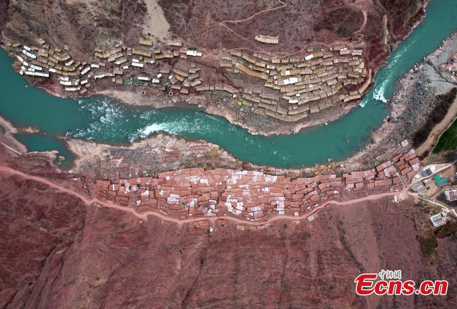 Aerial view shows salt pans in Mangkam County, Qamdo, southwest China's Tibet Autonomous Region, Feb. 13, 2023. (Photo: China News Service/Li Lin)