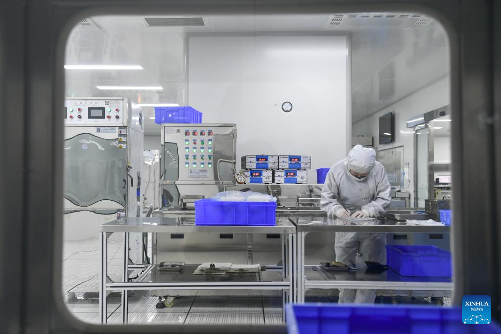 An employee works at a factory of JL MAG Rare Earth (Baotou) Co., Ltd. in Baotou, north China's Inner Mongolia Autonomous Region, Feb. 13, 2023. In recent years, Baotou has taken advantage of its natural resources and industrial foundation to expand the city's rare earth industry chain, with a focus on the rare earth deep processing industry. (Xinhua/Bei He)