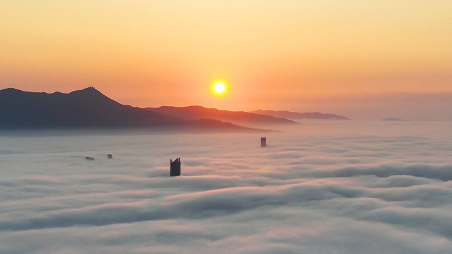 Heavy fog turns SE China’s Fuzhou into “city in sky” (4)