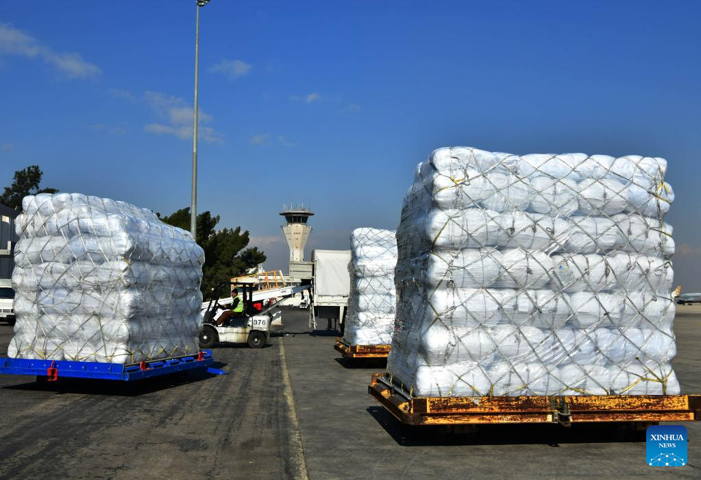 At the airport, Shi told reporters that the aid constitutes 80 tonnes of medical supplies, such as respirators and oxygen-generating devices, as well as tents, first aid kits, blankets, winter clothes, and food materials.