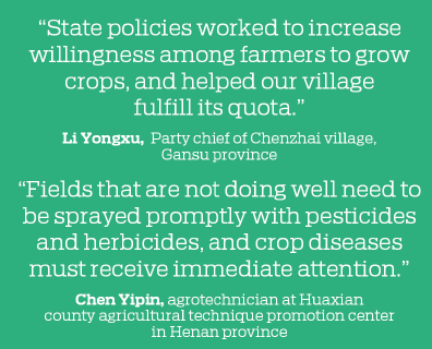 "State policies worked to increase willingness among farmers to grow crops, and helped our village fulfill its quota," Li said, referring to an agricultural subsidy given to farmers when the market underperforms.