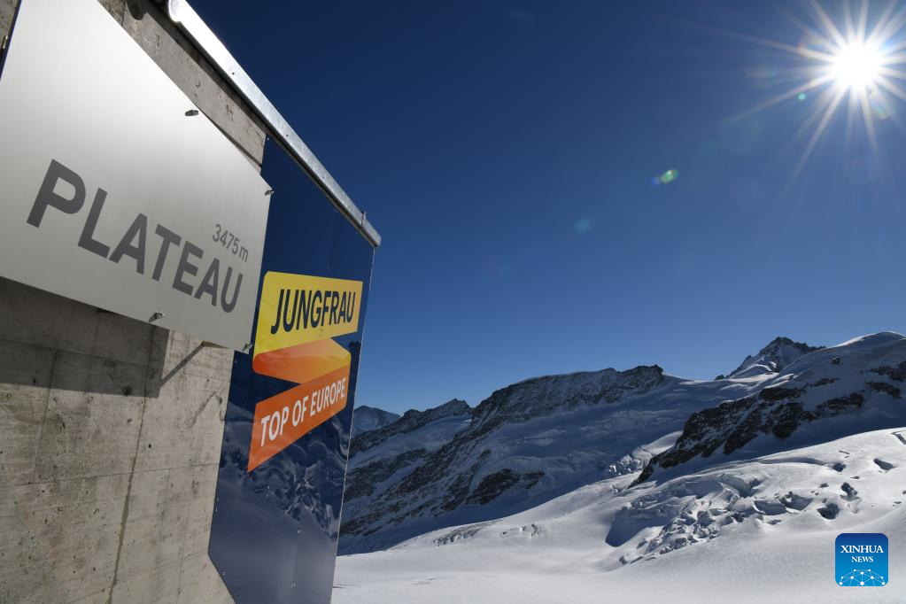 This photo taken on Feb. 14, 2023 shows Observation Terrace Sphinx on Jungfrau Mountain at the altitude of 3,571 meters above sea level in Switzerland. (Xinhua/Lian Yi)