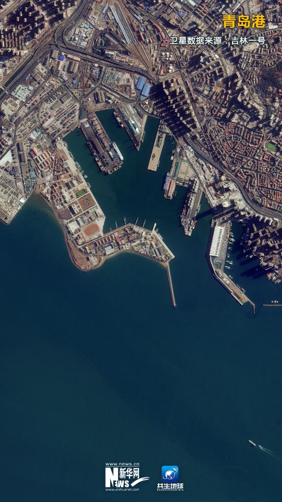 The satellite image shows Qingdao Port. (Photo/Xinhua)