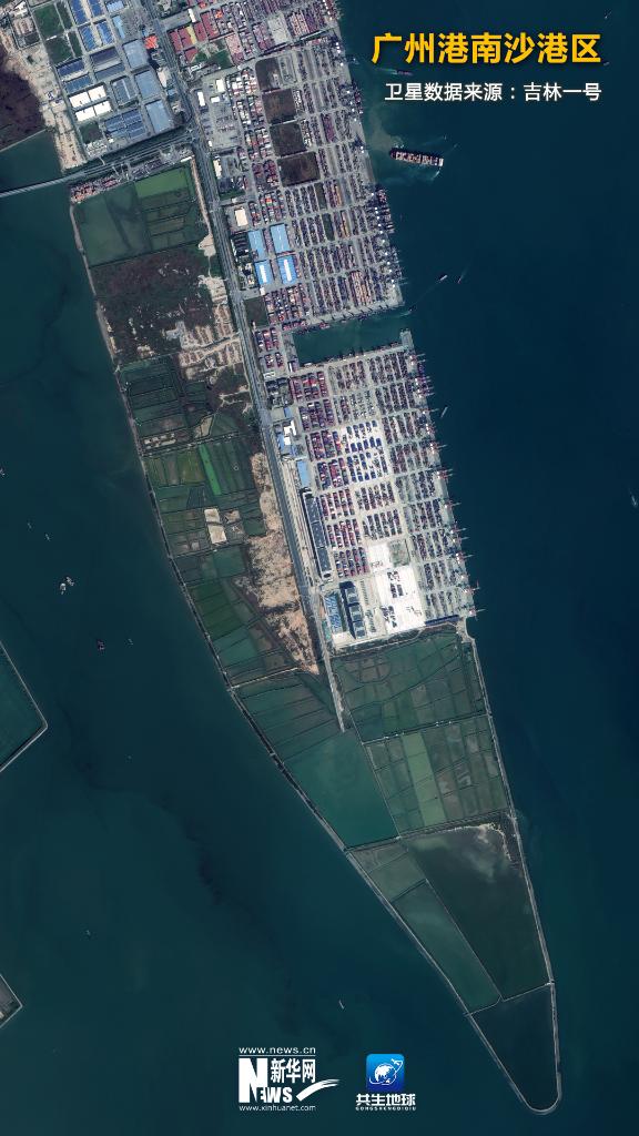 The satellite image shows part of Guangzhou Port. (Photo/Xinhua)