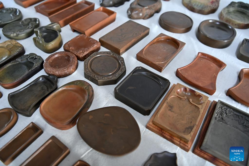 This photo taken on Feb. 15, 2023 shows Chengni inkstones displayed at a Chengni inkstone cultural park in Xinjiang County in Yuncheng, north China's Shanxi Province. (Xinhua/Yang Chenguang)