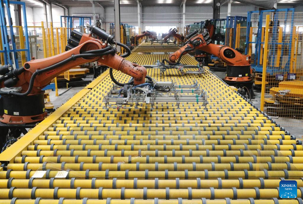 Robots operate at a workshop of glass manufacturing enterprise in Qinhuangdao, north China's Hebei Province, Feb. 17, 2023. (Xinhua/Yang Shiyao)