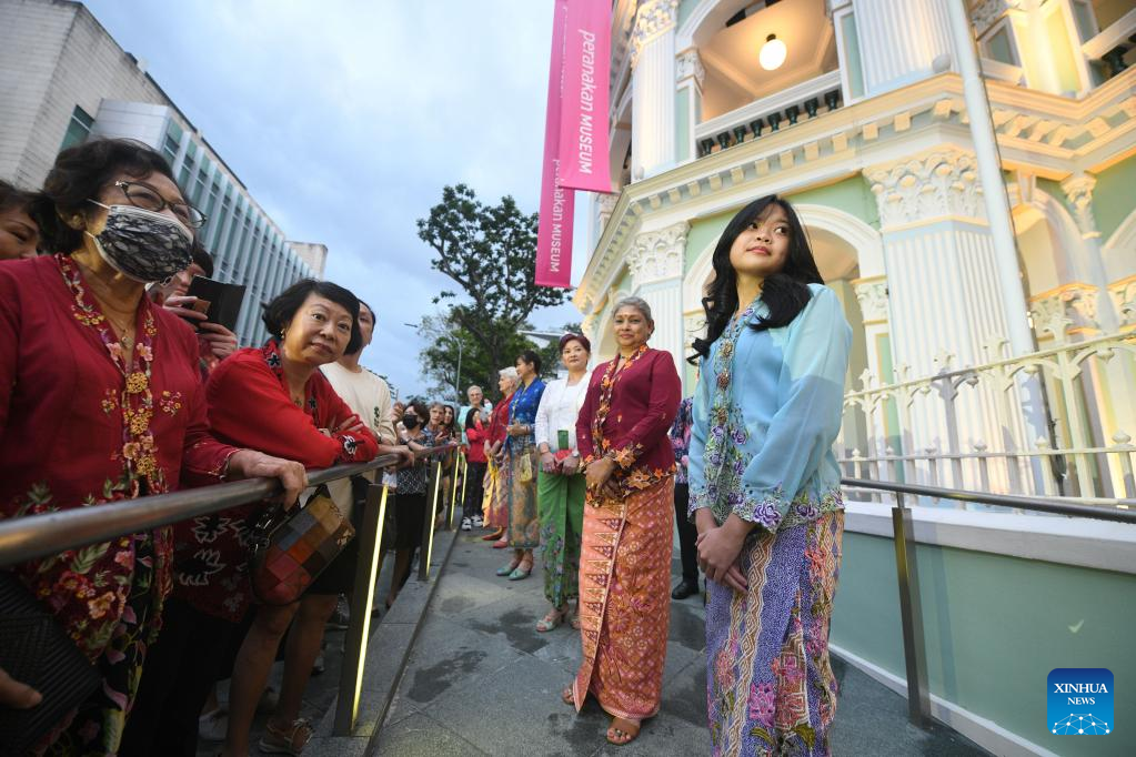 Models wearing traditional sarong kebaya on the first day of the newly re-opened Peranakan Museum, after a four-year renovation, in Singapore on Feb. 17, 2023. (Xinhua/Then Chih Wey)