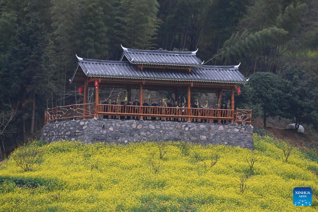 Villagers from Wuying Village visit Tongban hamlet, Dongqi Township of Rong'an County, south China's Guangxi Zhuang Autonomous Region, Feb. 18, 2023. (Xinhua/Huang Xiaobang)